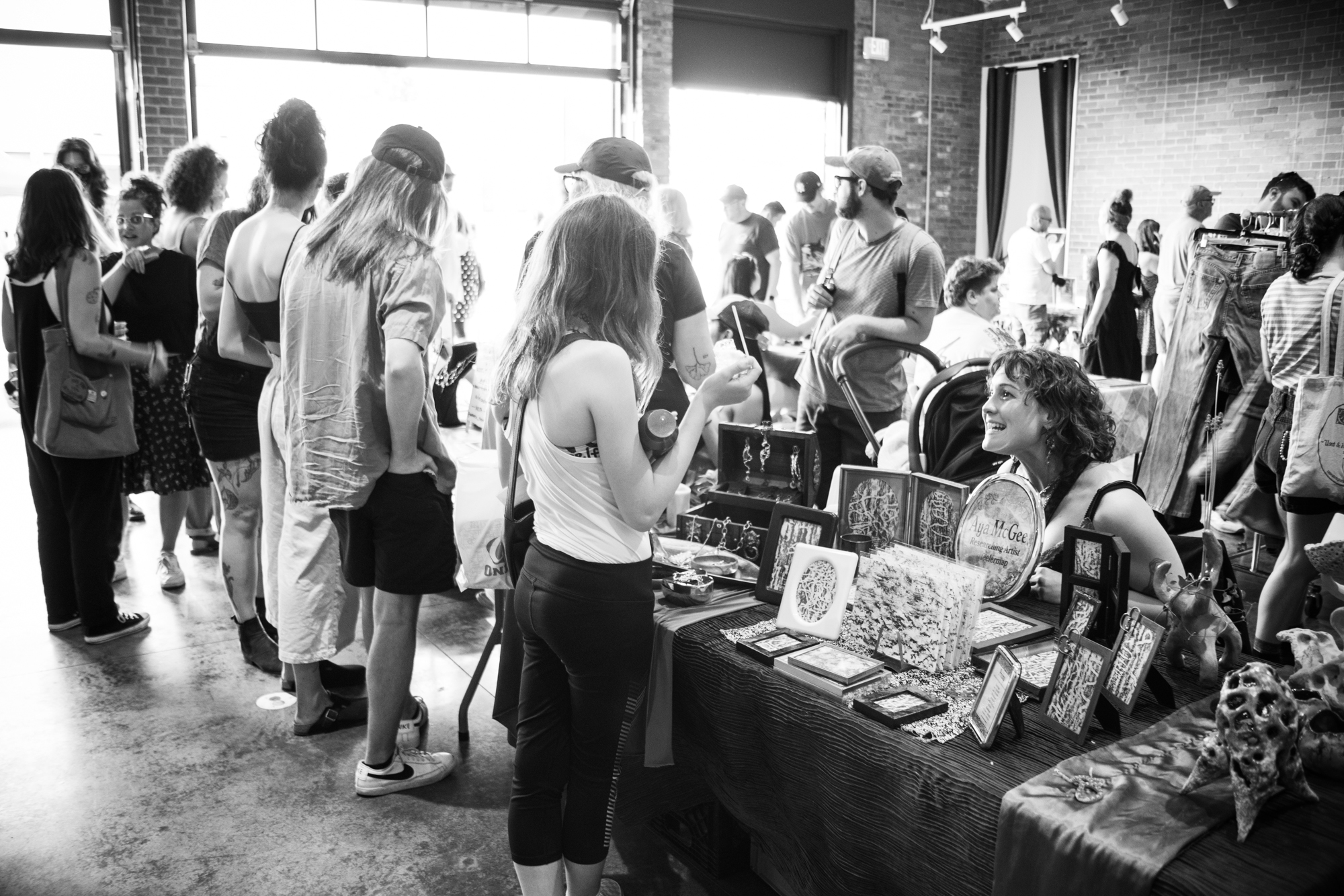 The Back Door Art Market Vendors: Allnewgrowth, Art By Yay, Aya McGee, Bethany Habegger Art, Brady Fanning Ceramics, Diego Doodles, Ileana Haberman, Jada Bee’s Black Witchery, Kathryn Coughlin, Roots Tattoo, Stained Glass by Molly B., Support Local QueersThe Cat’s Closet, Troll Made Art