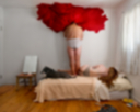 Fortunately, she offers us a guide in her writing. She’s pretty open about the emotional content of the work, and it’s ambitious. She’s tapped in to the dynamics of suffering, its weight and its eventual relief. The characters in her constructed scenes endure wooly, fleshy, cumbersome weights. With titles like “Cancer” “White Mass” and “Cocoon” her pictures push forward the frustratingly animal side of the human experience, our wrangling within our own imperfect and temporal bodies.