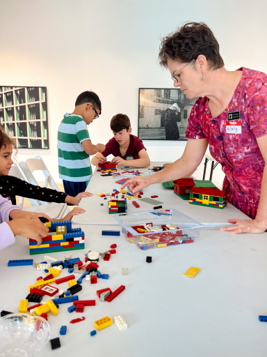 In conjunction with the opening of Chasing Light, our monthly Pictura Kids workshop encouraged our younger audiences to imagine themselves in Clarissa Bonet’s shoes as the photographer in a bustling city. Art Educator, Hilary Cannon Anderson, led children through the gallery pointing out windows, shadows, and people throughout the images. Following some discussion, we used Clarissa’s photographs as inspiration to build our own Lego city and used flashlights to experiment with the ways that light, shadow, and perspective can affect a scene.