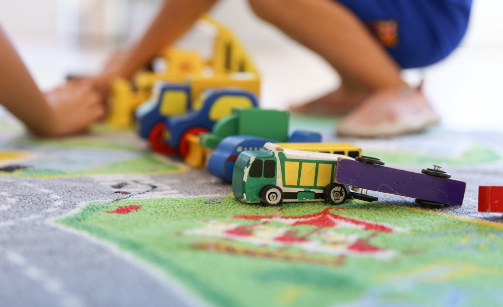 Paint with cars! Use washable paint to cover the wheels of the toy cars and let your kids roll the cars around a large piece of paper or canvas.