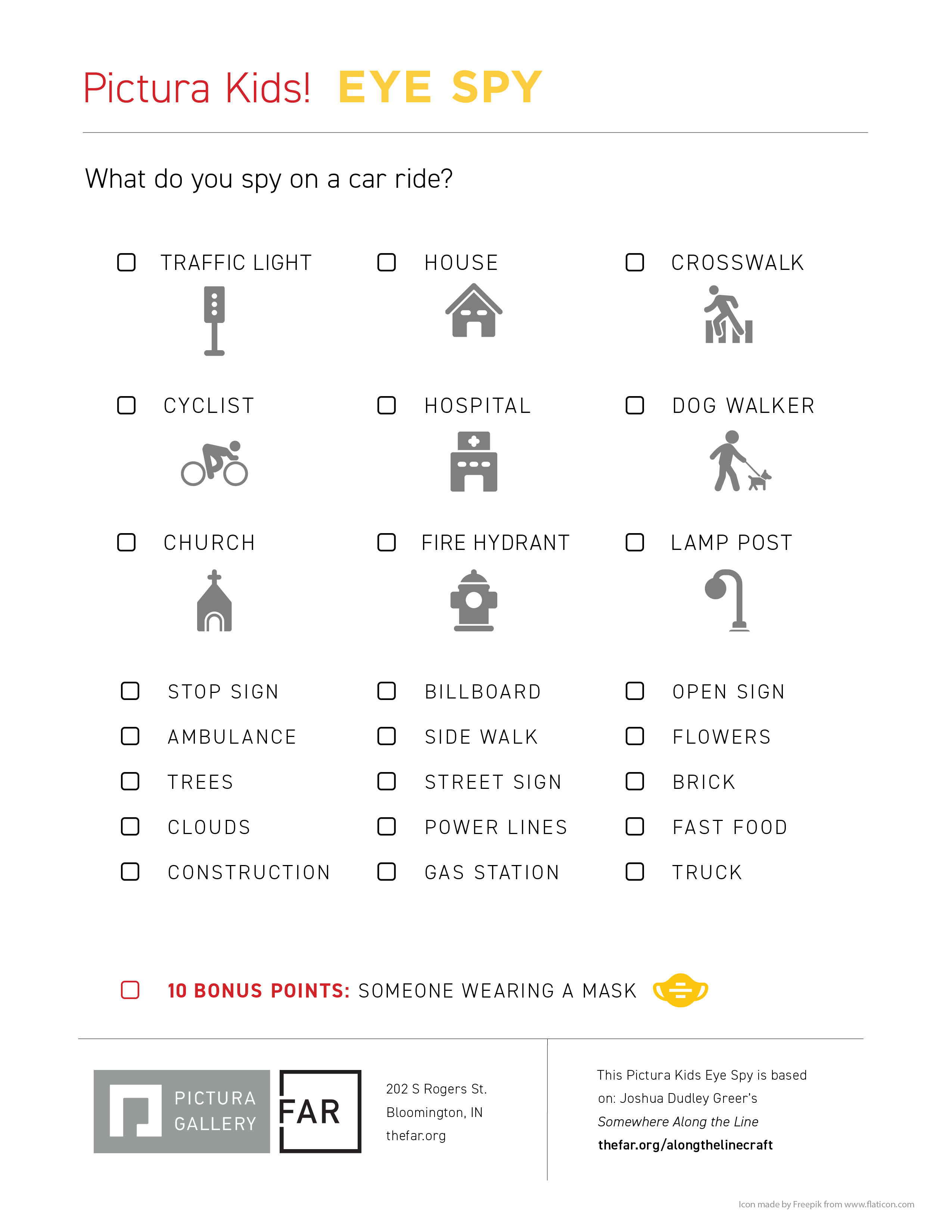 Can you spy all of the items on during your car ride? This is a fun activity that the whole family can do together and will get you out of the house safely. We’ve included a blank version that you can fill-in for extra fun. Some Tips:Follow a route you normally would take to work or to school.Make it a collaborative game, have the child pick an item on the list and see if you can drive to find it.For us competitive types, assign points to each item based on how hard or easy it is to spot.Share the activity with a friend and video chat to share what each of you found.Share your eye spy creations with us on Instagram, tag @fourthandrogers and we will re-post you.