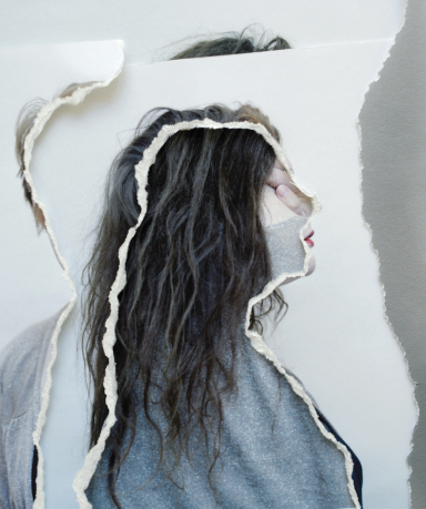All the included photos come from Sylwia’s own archive or were specifically created to be included in a particular piece. The idea behind using the three-dimensional torn fragments of a textured paper, which are then assembled and reproduced on the same type of paper, was to create a tactile, multidimensional object. The lack of reflection (prints are mounted instead of being encased in a frame behind a glass that would separate them from the viewer) and large scale of the tactile piece of paper invite us to participate with our own emotional response.