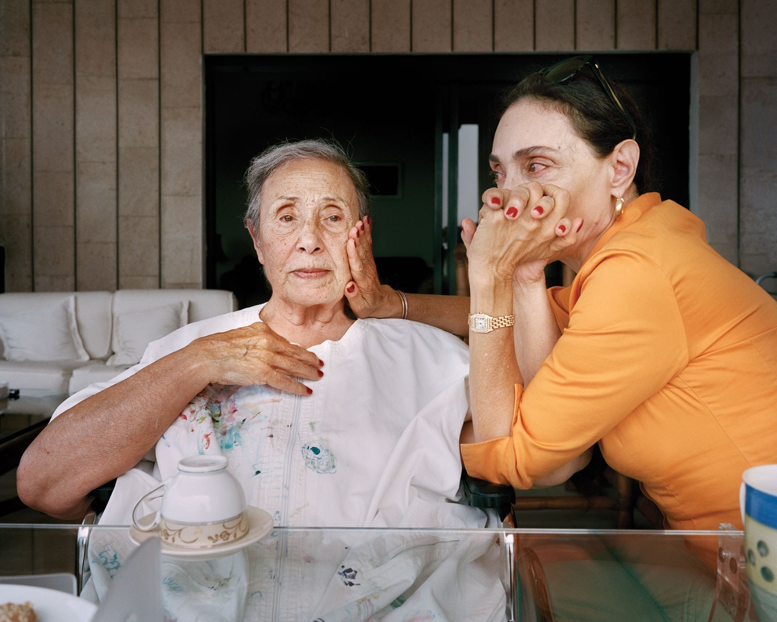 In “Unspoken Conversations” Matar photographs young women with their mothers, a different and equally potent vision of growing older. The viewer is left to marvel at the similarities, imagining the form one woman came from, projecting the form the other may eventually take. Mother and daughter mirror one another and differentiate themselves like shifting magnetic poles. The women exchange gestures that take on new meaning as they echo one another.