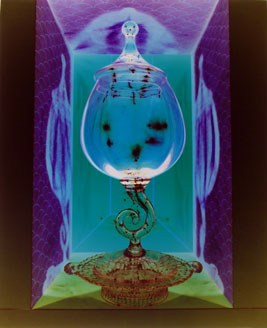 I use a hand-built pinhole camera to create large scale one-of-a-kind c- prints. The subject matter, a collection of ordinary glassware, some of the first objects purchased by my immigrant parents, are assembled by stacking and balancing pieces into a single tableau, often within a larger construction. These decorative items are some of the things I remember vividly in our home growing up.