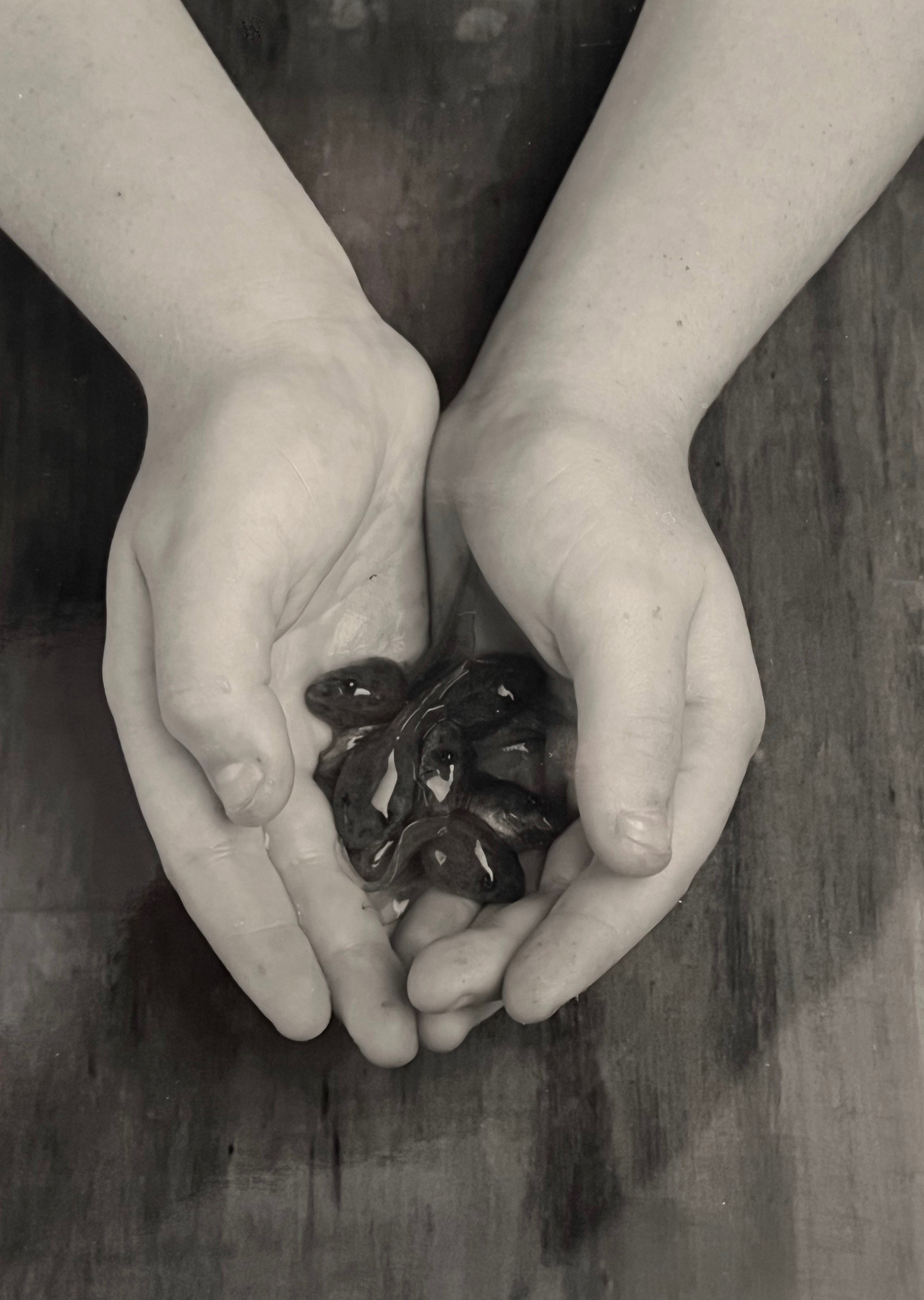I carefully took these animals into the studio and made portraits, with their individuality in mind. I made eye contact. I photographed them in hands and in human containment. I returned them exactly where I had found or rescued them from human peril. No animals were injured in this project. My possession of them was brief.